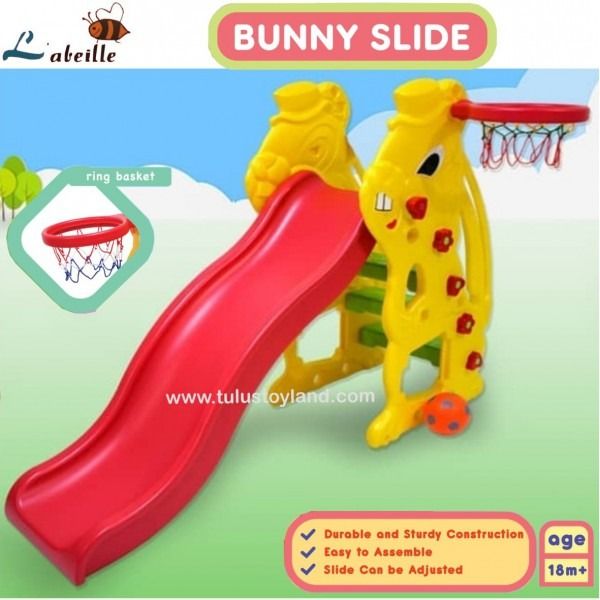 Bsa di pkai dr usia 2 tahun Terbuat dari bahan plastik yang aman Mudah dilepas, mudah dipasang dan mudah dibersihkan Mainan perosotan yang dilengkapi dengan ring basket Dapat dimainkan di dalam maupun di luar ruangan Sarana latihan untuk memanjat, meluncur, bermain basket dan sepakbola Mengembangkan kemampuan koordinasi dan gerak motorik Berat beban maksimum penggunaan perosotan 35 kg Ukuran barang = P157 x L84 x T110 cm | Panjang perosotan = 135,5 cm